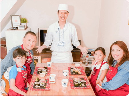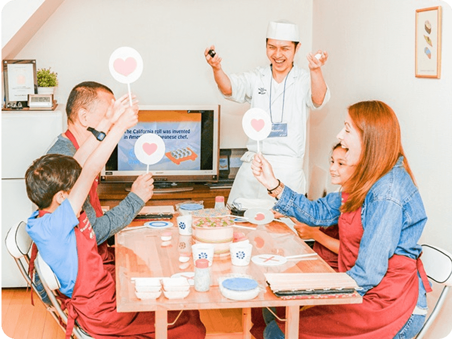 Many families with children join our class, and we’ve designed the program so that kids can enjoy making sushi too. However, groups with children under 8 years old cannot participate.